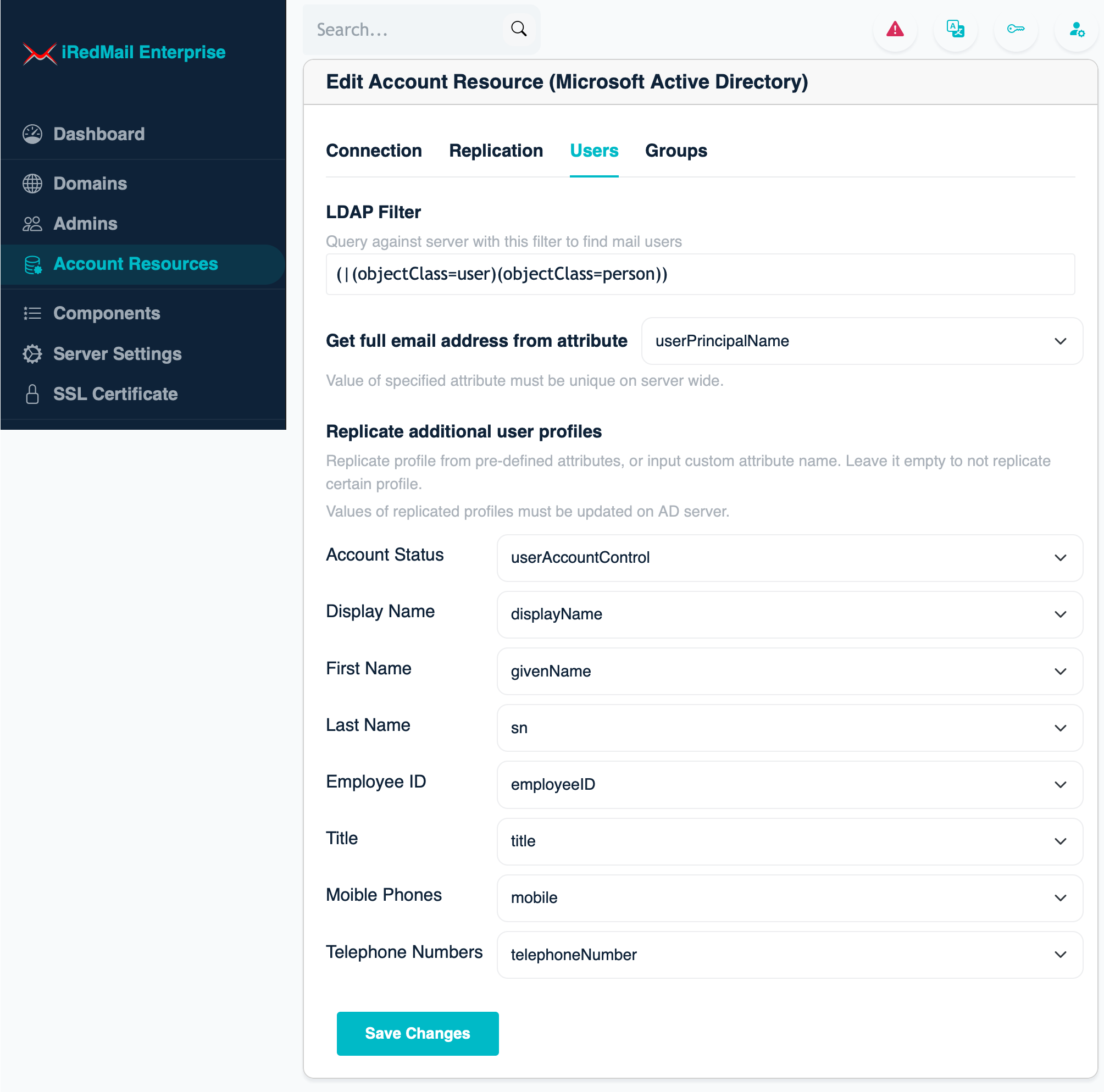 supports replicating additional user profiles from AD.Click Save Changes if you made some changes.